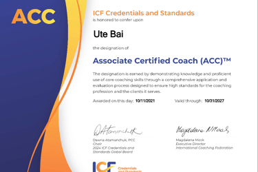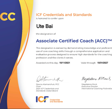 ICF Associated Certified Coach (ACC) since 2021.